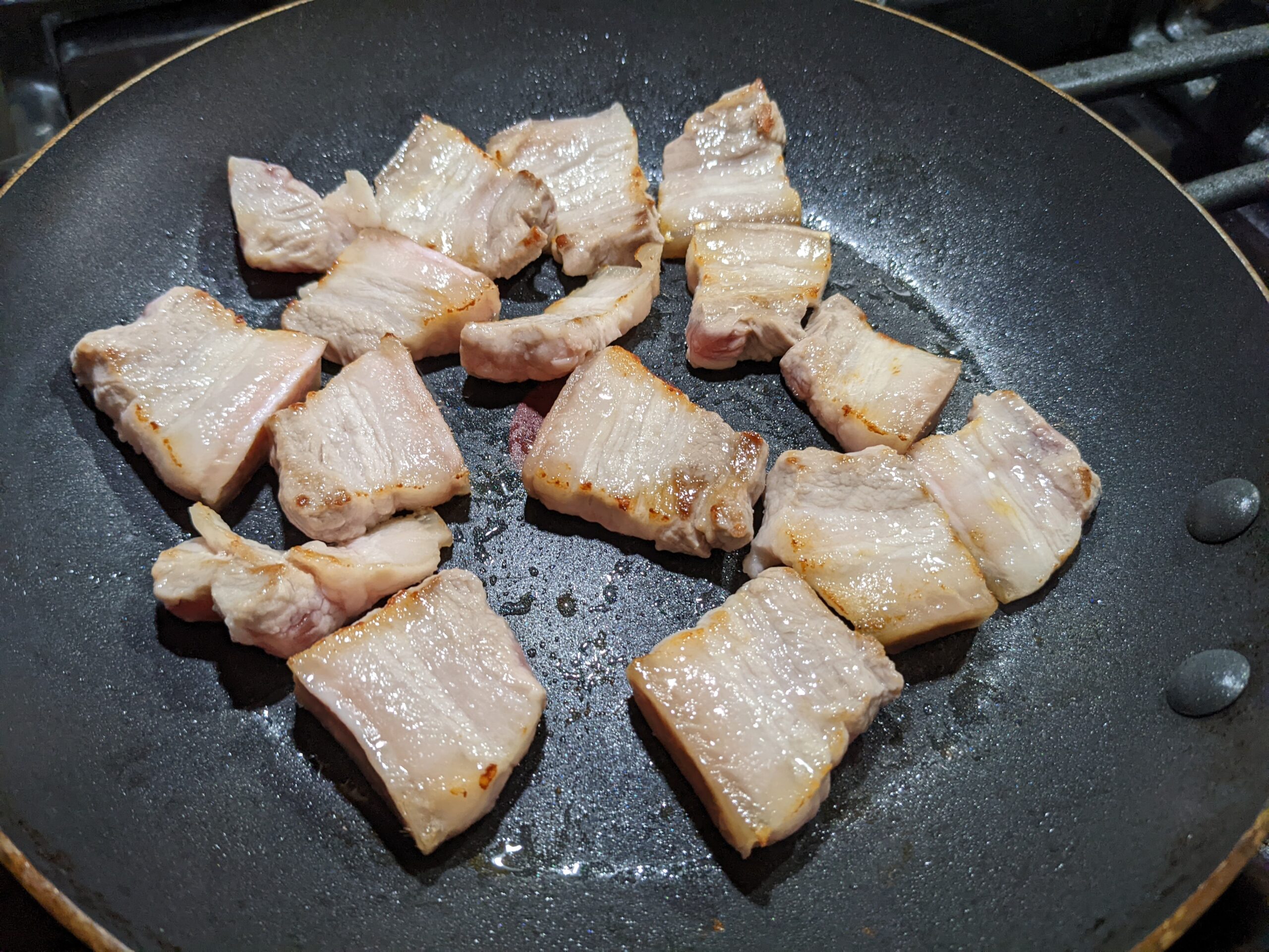 - do not need to add oil as pork belly’s fat will be squeezed out and fries itself