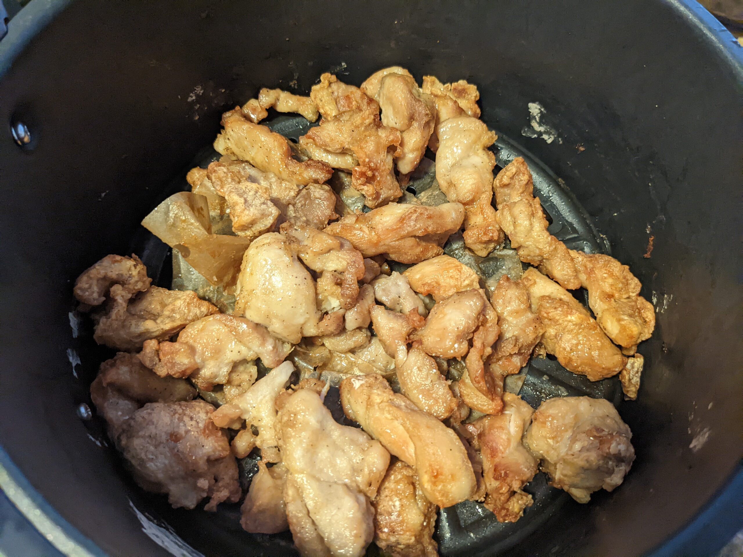 - coat chicken with 1-2tbsp corn starch while marinating, would give the little crispy coat when air-frying