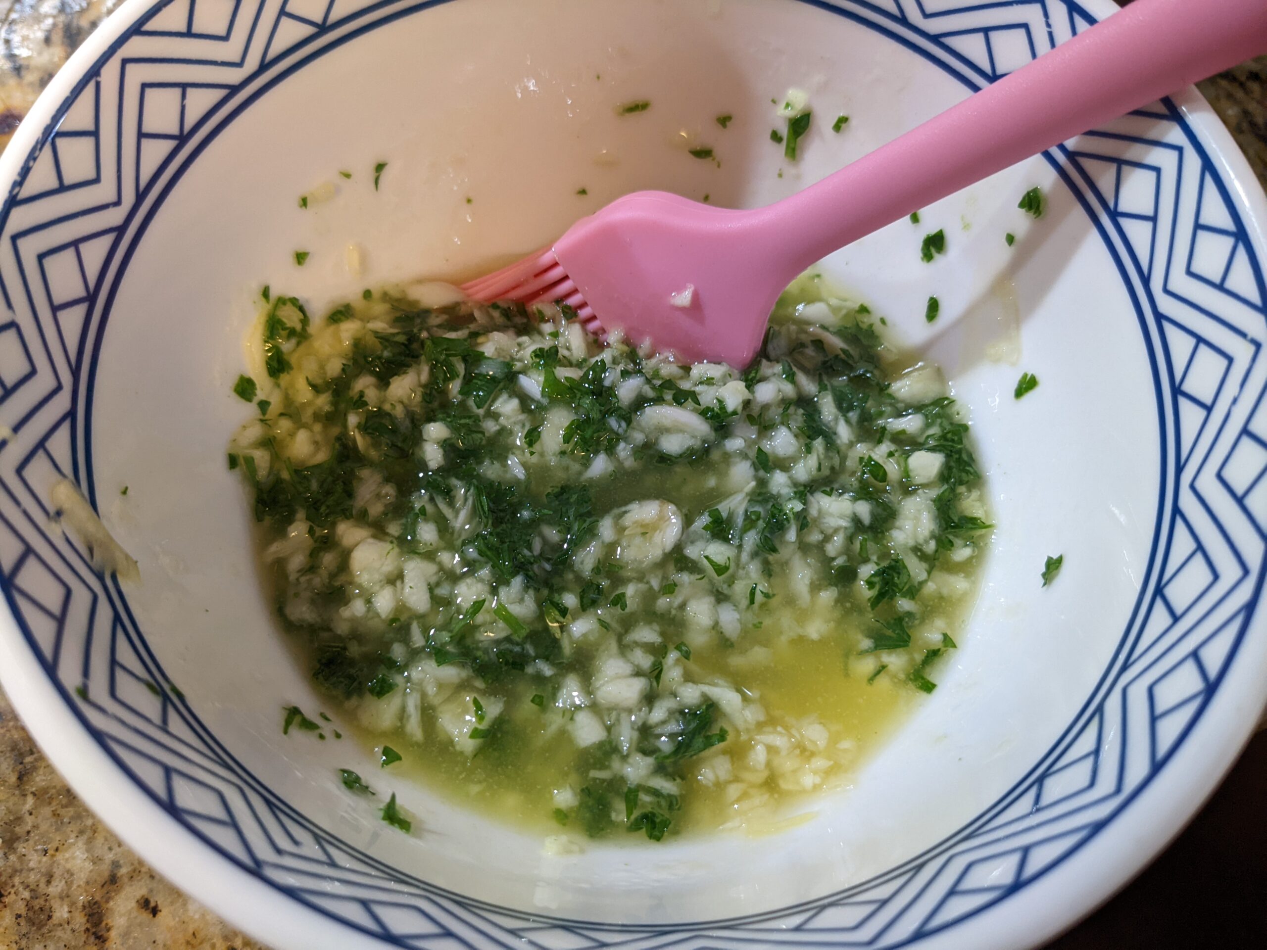 STEP 2: melt butter, mix with minced garlic and minced parsley (NOT TOO MUCH!)
