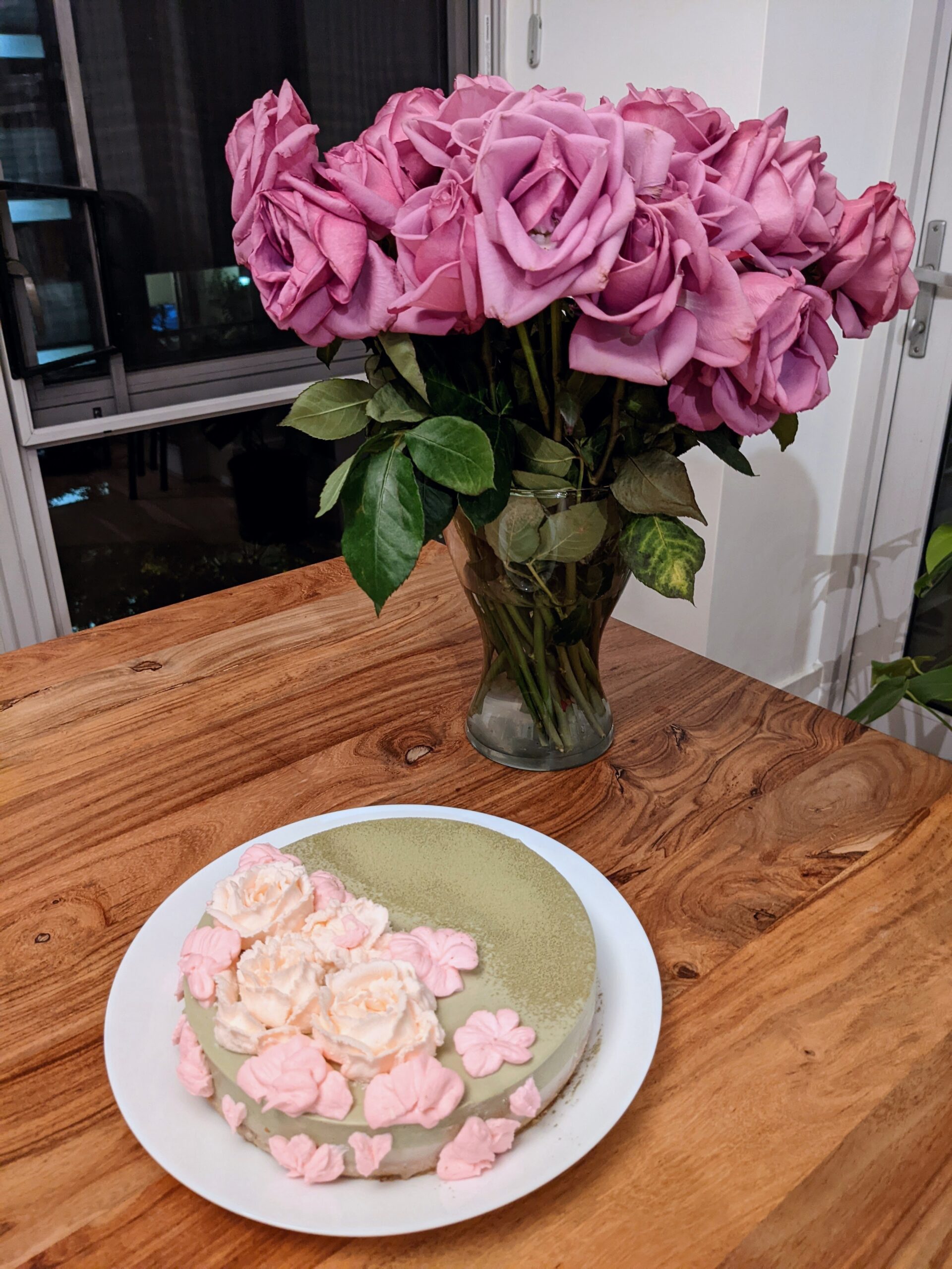 at least 4 hours later…Demold (warm up the cake mode side with warm towel or torch). Decorate cake, put back in fridge for at least 30mins before serving