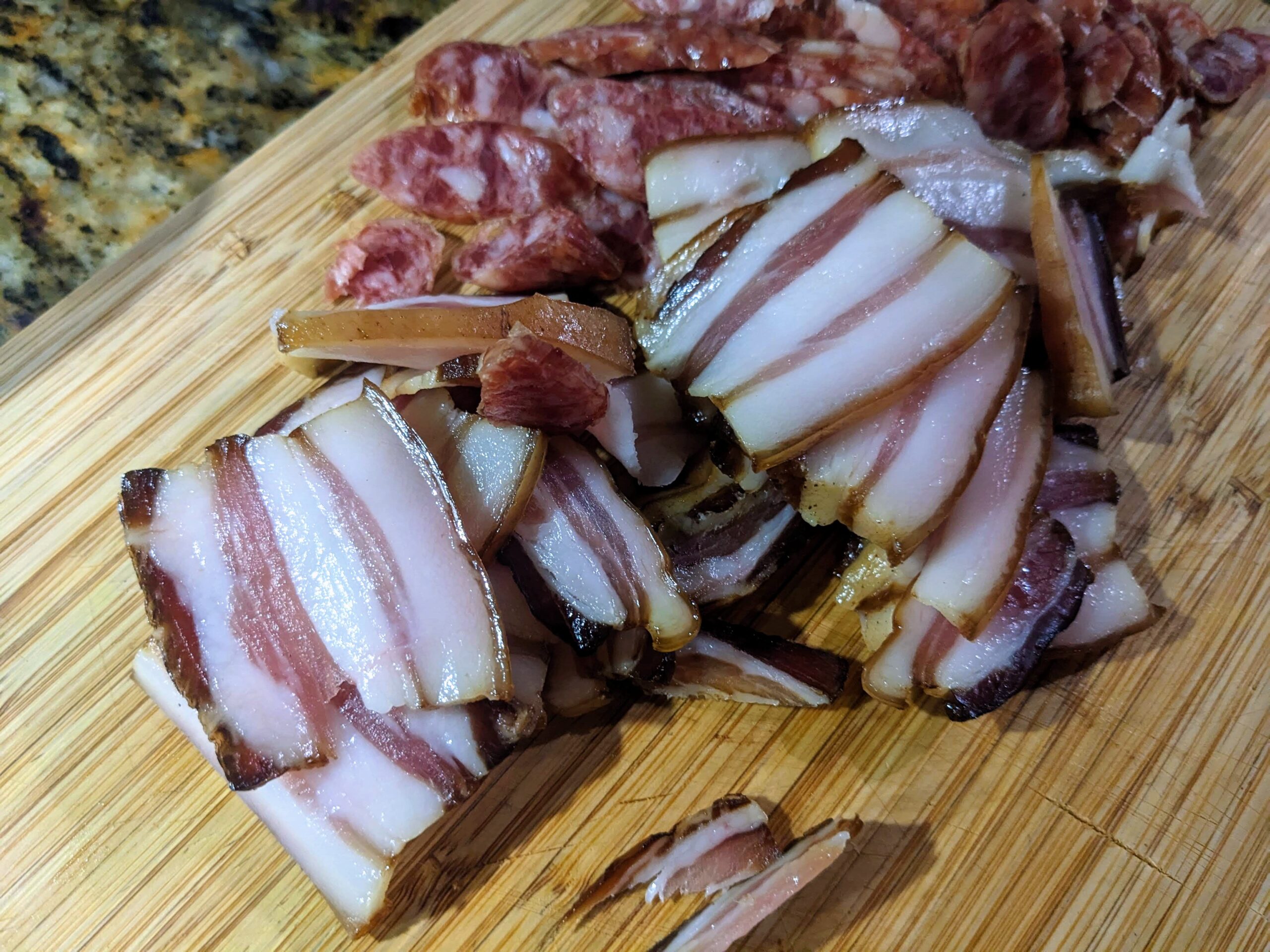 - white wine / high degree cooking wine (get rid of pork’s gamy taste and for preservation)