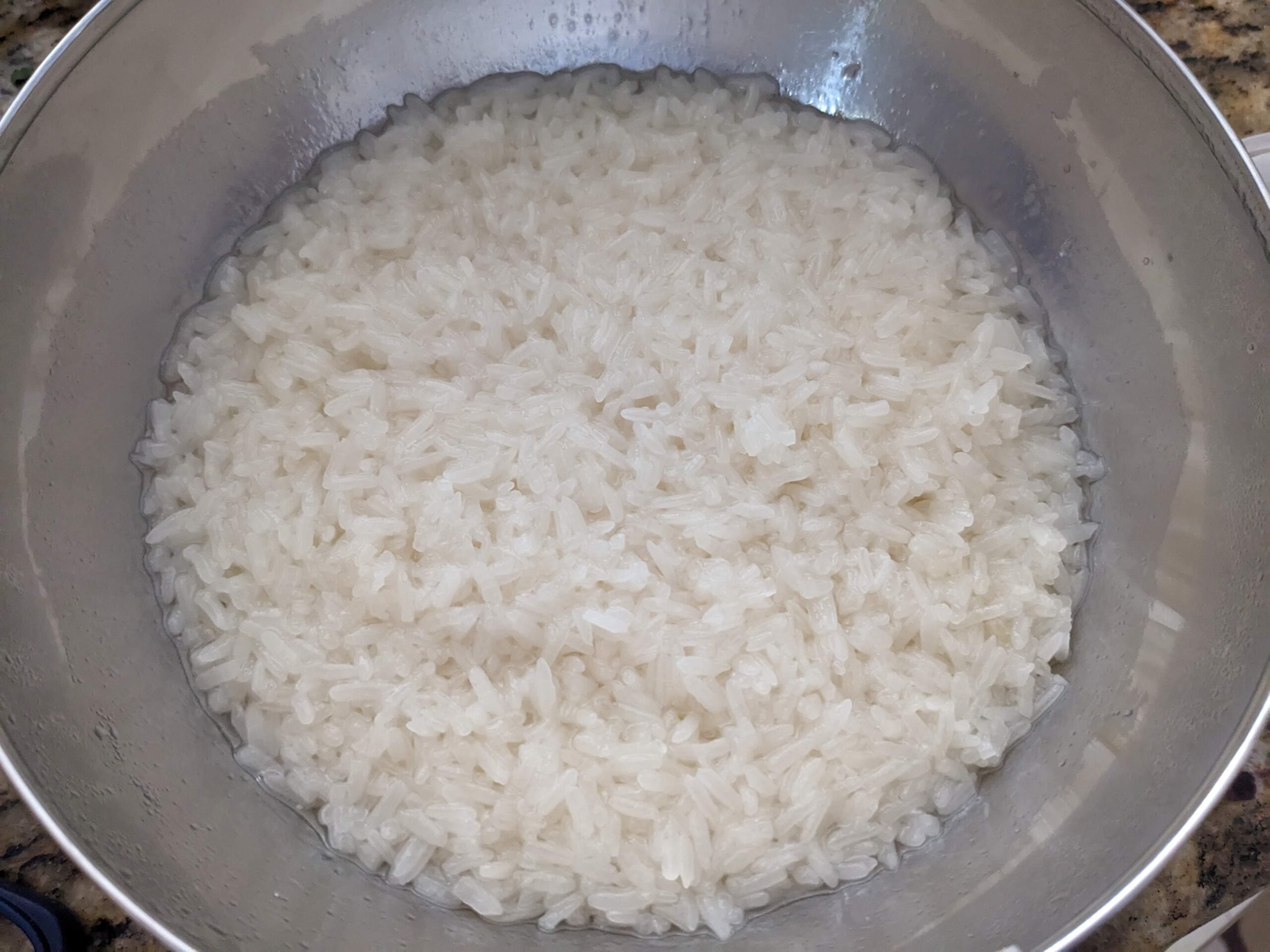 STEP 1: wash glutinous rice a few times till water is clear, to get rid of excessive starch for a less-gluey texture; rest glutinous rice in water at least for 4 hours, or better overnight