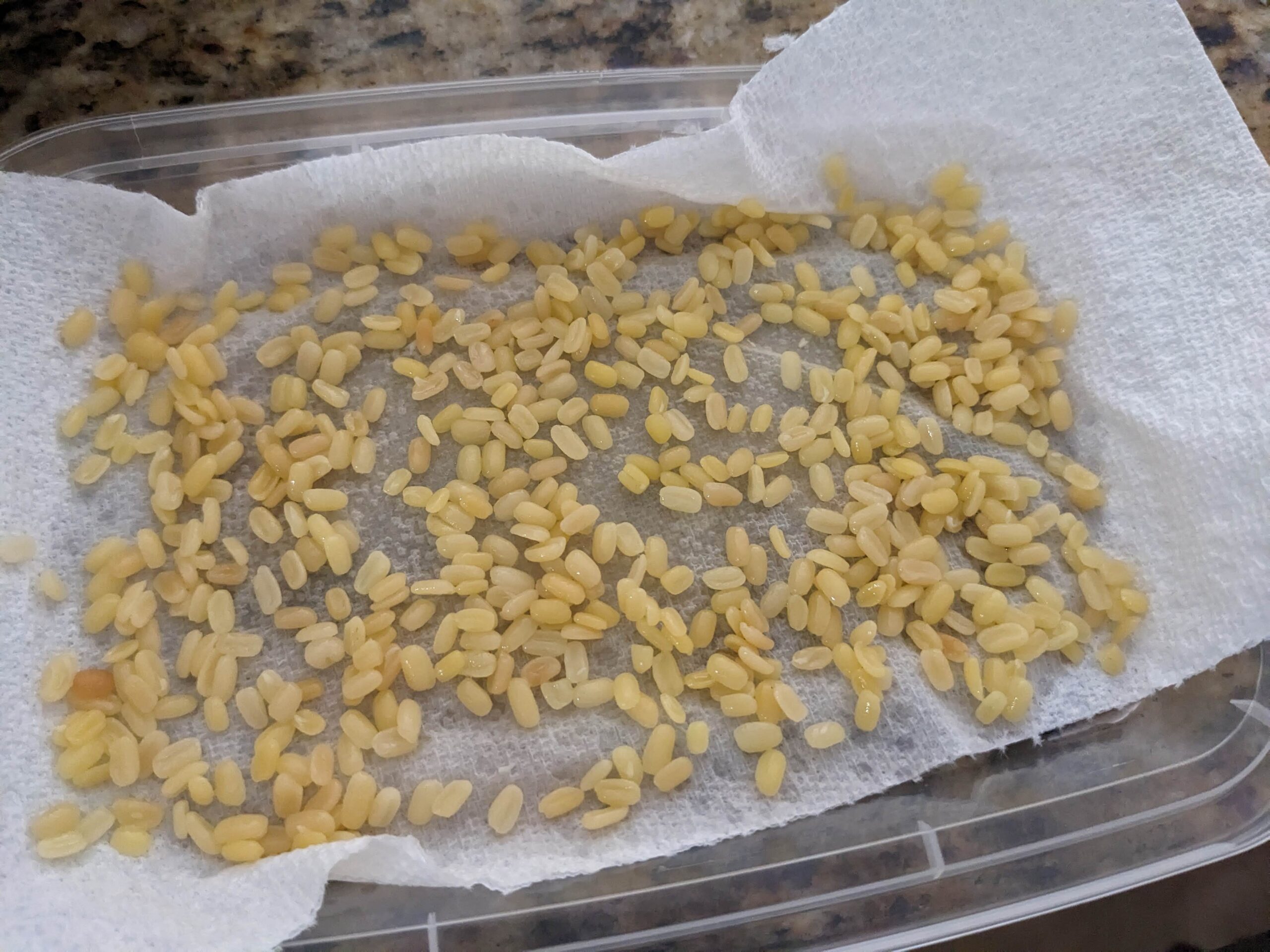 STEP 8: remove water, dry green bean on a piece of paper towel