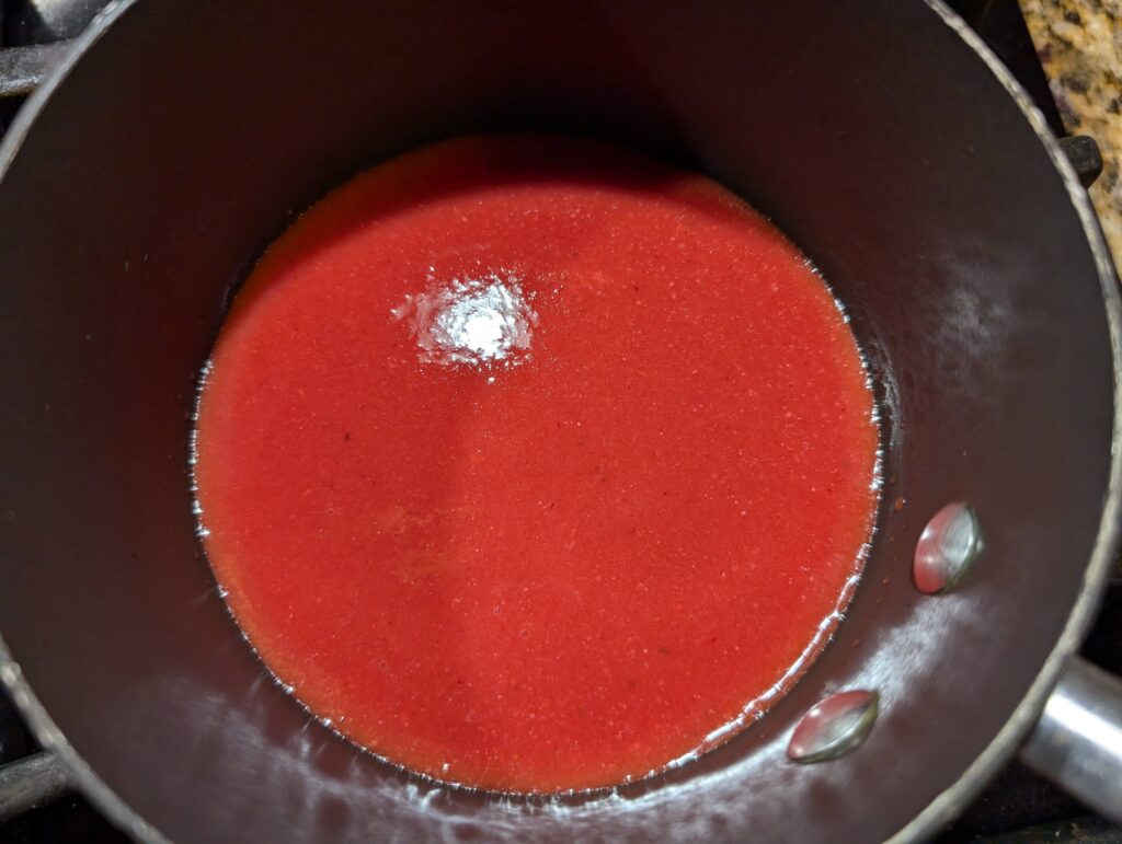- over medium heat, heat up 125g strawberry puree