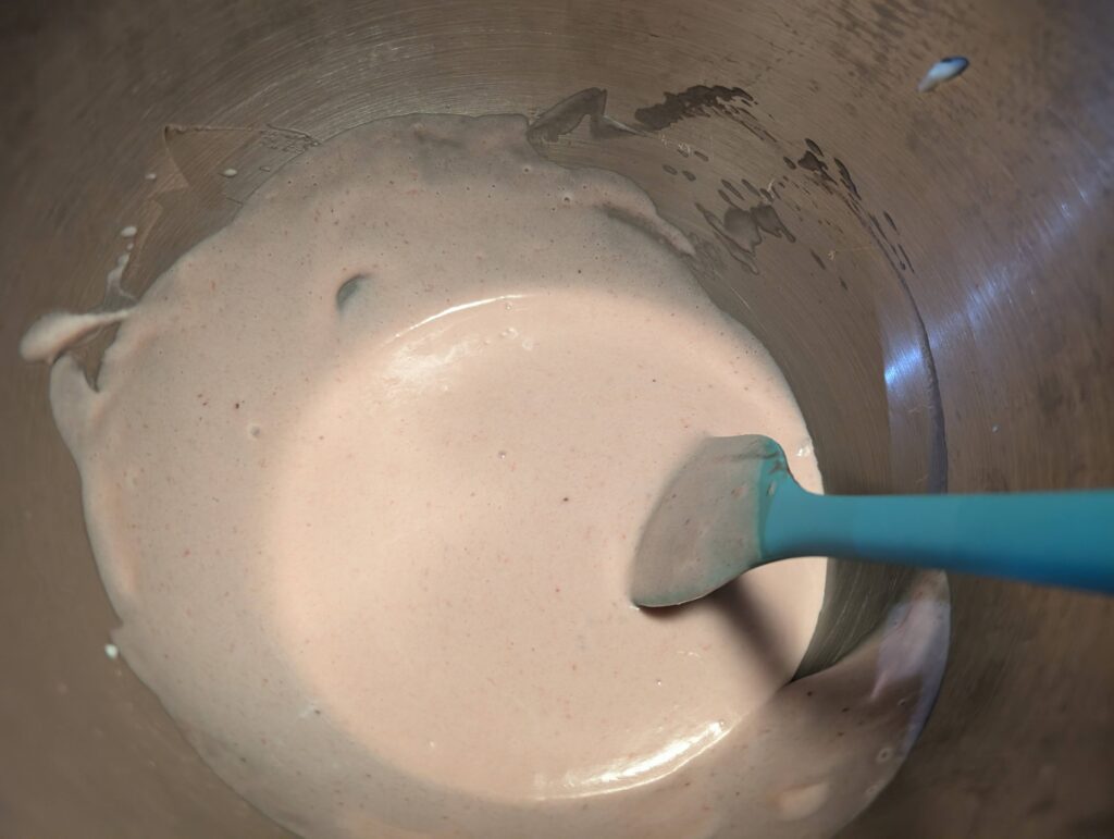 - in the freezing whisking bowl, whisk 130g heavy whipping cream till soft pattern forms