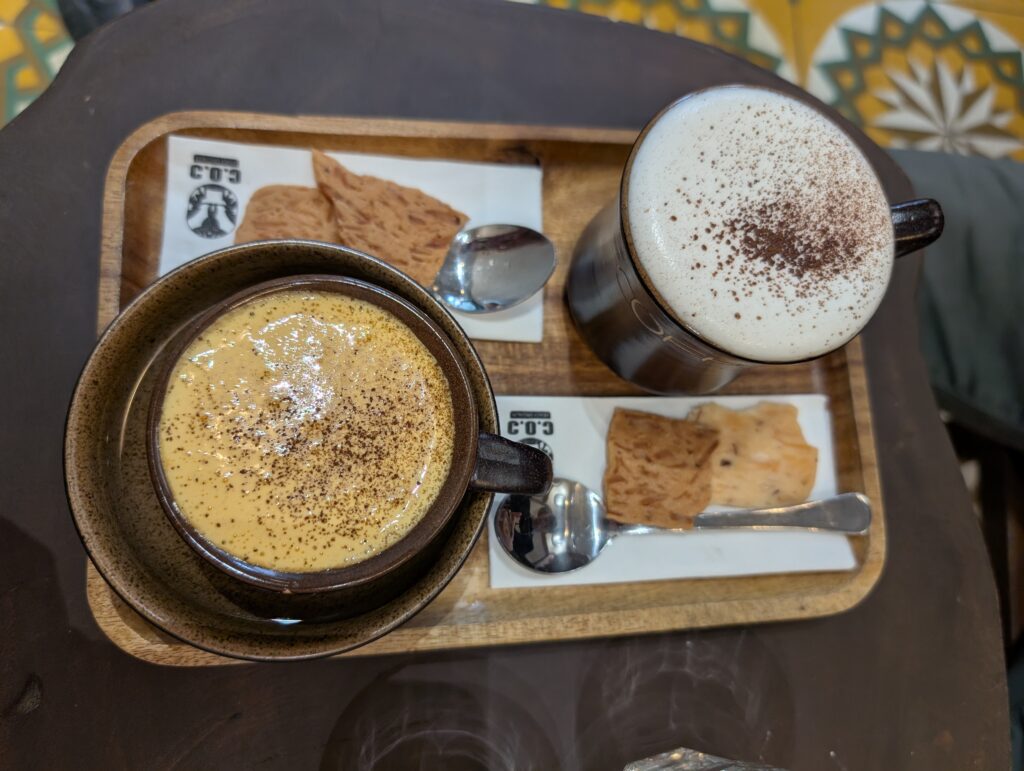 - C.O.C Legacy Specialty Coffee (map) – it’s hidden on 2nd floor after a super narrow, down, swirly staircase of a building in one of the busiest street of Old Quarter. It could take quite some time to get the coffee, but I think their egg cream is the richest, does not have the raw egg taste; salty cream is smooth and they provide taro chips