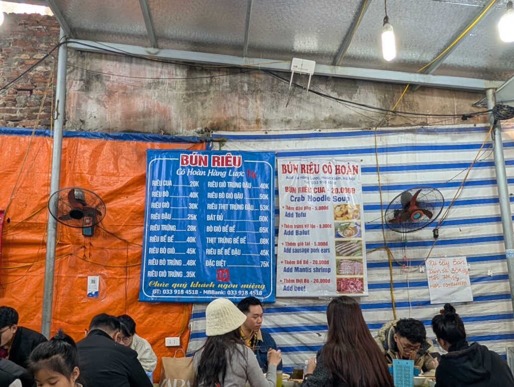 - Bún riêu Cô Hoàn Hàng Lược (map) – recommended by xiaohongshu and hotel CRM, environment is not as clean, staff was not very friendly either – first kept tapping me to order in a rude way, then charged me 20k extra as she said I ordered both mantis shrimp and beef (which I didn’t), but they ran out of beef so she doubled my mantis shrimp. Either I was annoyed by their attitude and being treated differently, or I didn’t think their bun rieu was that good, I have removed this bookmark
