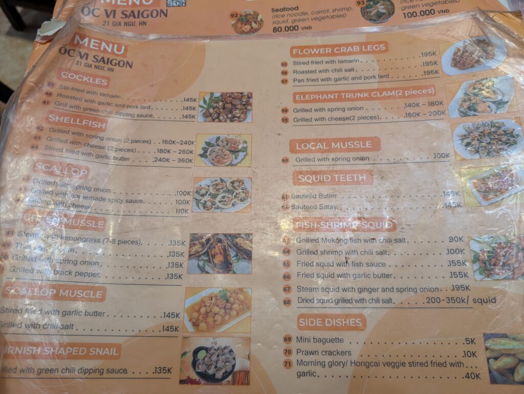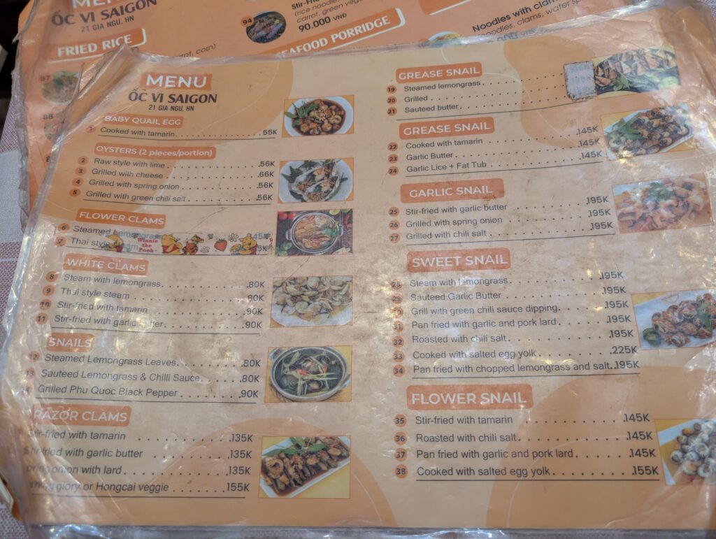 - Oc Nong Ha Trang (map) – haven’t tried but full of locals eating on low stools on the streets