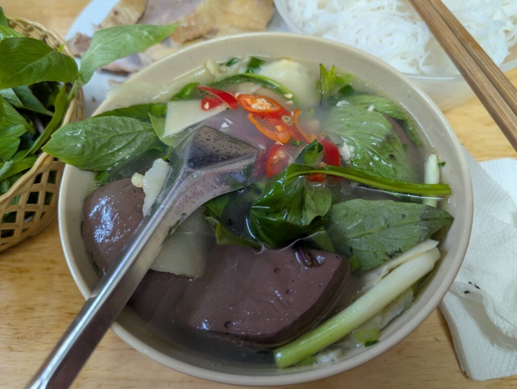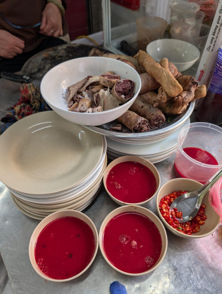 - Cháo Lòng Cháo Lòng (map) – Cháo Lòng is pork offal congee, with a variety of organs such as large intestine stuffed with pork blood, small intestine, liver, stomach, etc. I only had it at this place but I think it has a bit MSG? There’s also seasoned raw pig blood soup