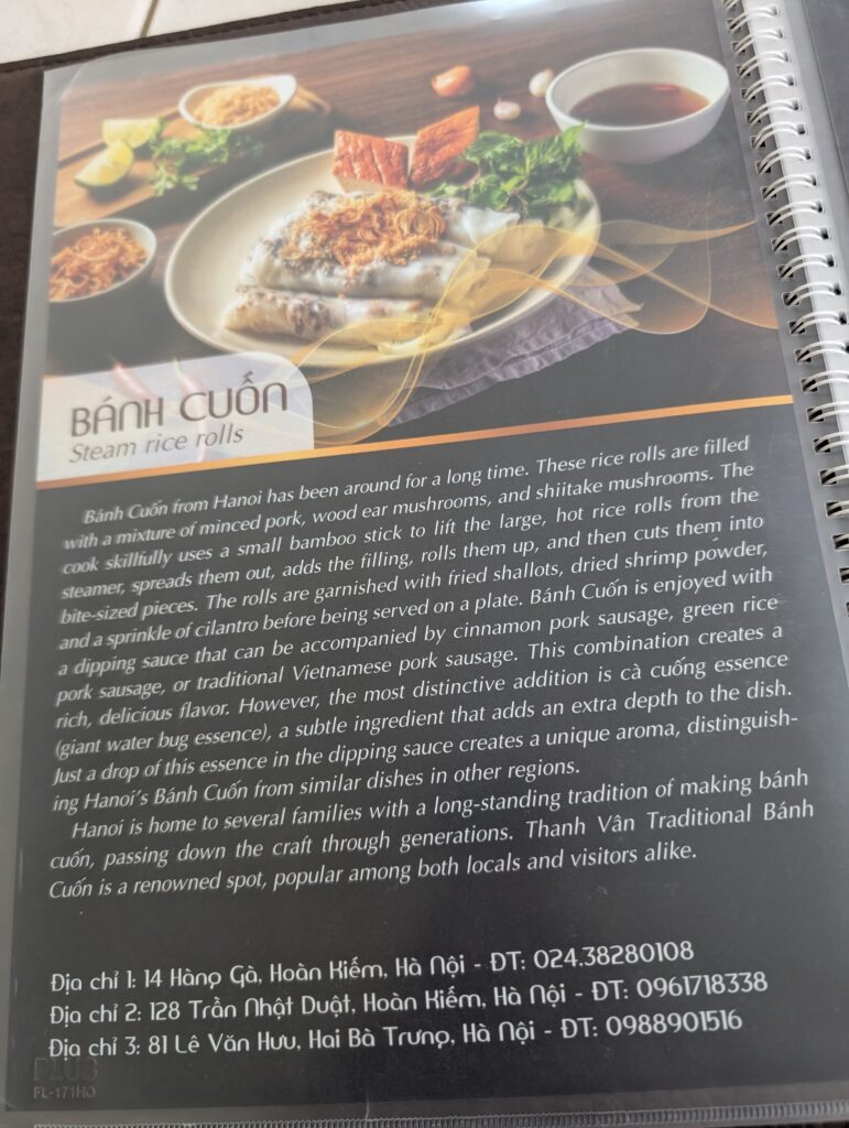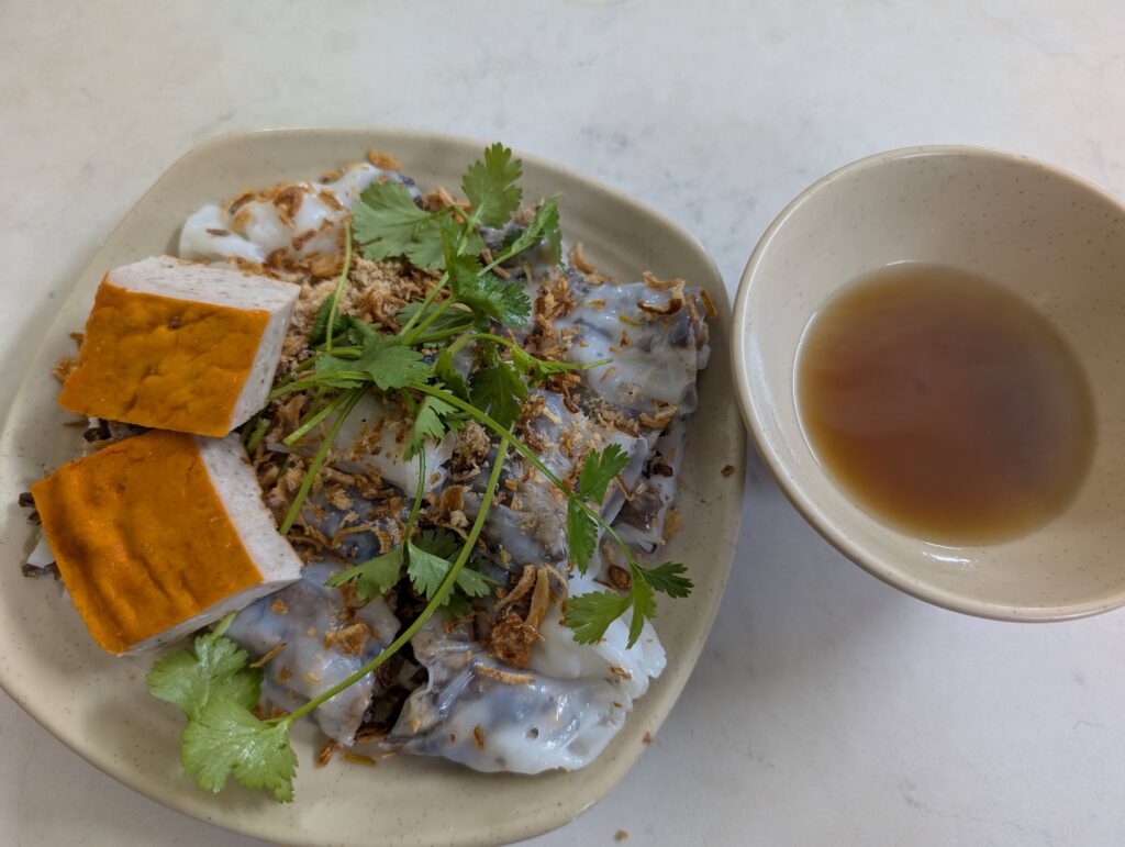 - Bánh Cuốn Gia Truyền Thanh Vân (map) – Bánh Cuốn is basically rice roll, much thinner than the Cantonese one. Also it uses pork/chicken + wooden ear as filling, dipping in waterbug sauce (tastes weird by itself but brings out the flavor of Bánh Cuốn very nicely!!)
