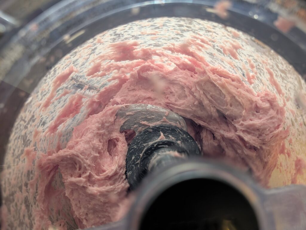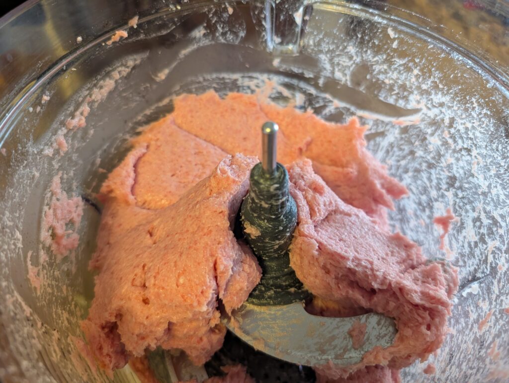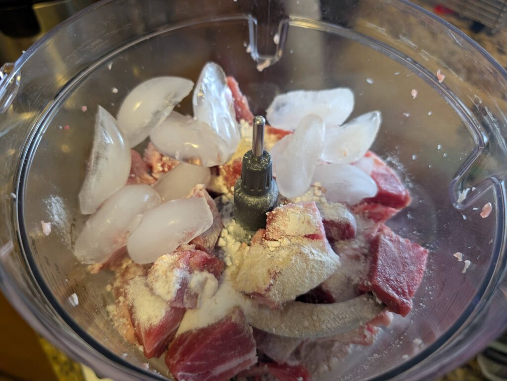 During my recovery, I watched more cooking videos and learned a few key lessons: don’t overwork the food processor, don’t let it overheat, and always keep the meat and processor bowl icy cold before grinding. A lower temperature helps the meat emulsify faster into that signature elastic, almost “liquid” texture. To avoid breaking another low-power processor, I eventually upgraded to a 1000W Ninja food processor (NOT AN AD), and since then, every batch has been a success.