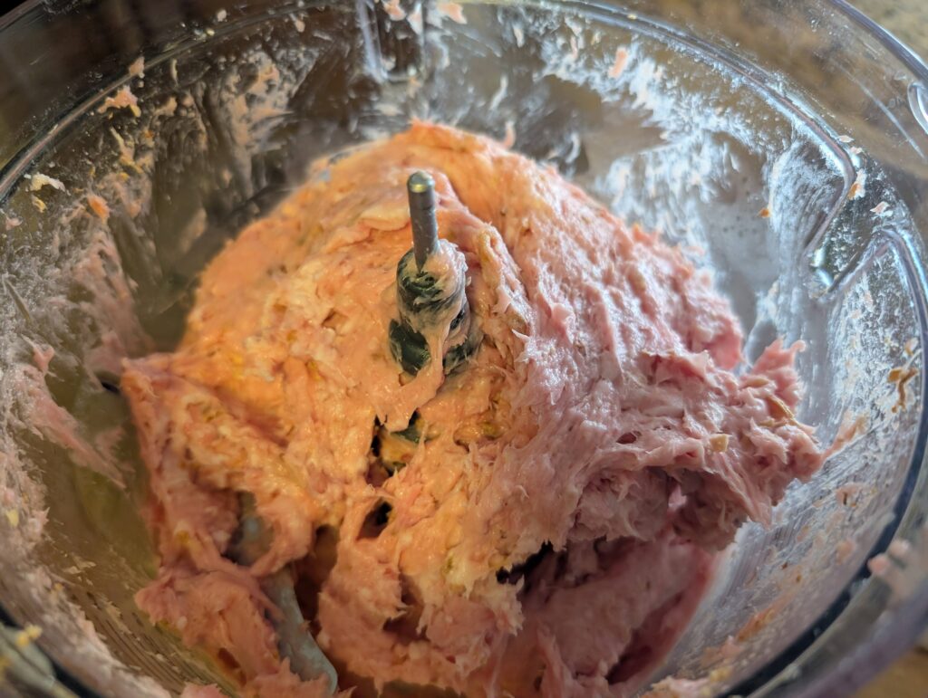 - Step 2: Transfer the lean meat back into the freezer. Use the food processor to pulse the fatty meat into small chunks (~0.5 cm). This adds a chunky texture to the loaf. Remove and set aside.