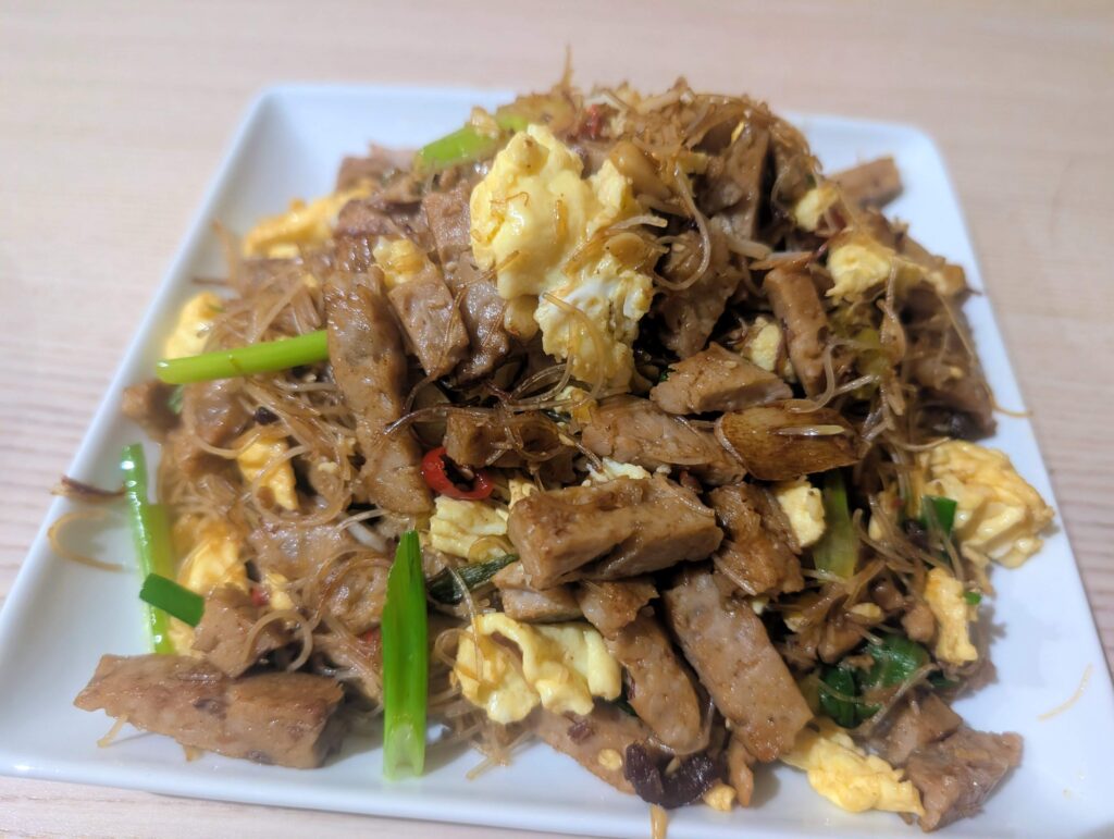 When I was growing up in Guangzhou, every now and then my mom and grandma would bring home Teochew (4hr drive from GZ) meat loaf from the market. These cylinder-shaped loaves would be sliced thin and pan-fried, or cut into strips and stir-fried with noodles or vermicelli. Simple, comforting, and very much a taste of home.