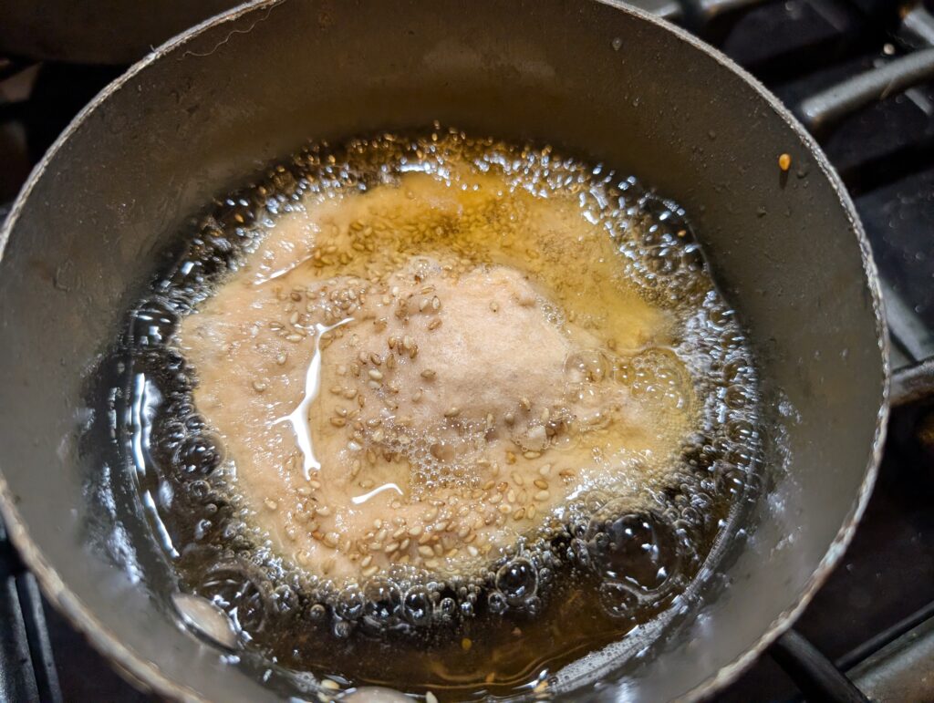 - Check the oil temperature to ensure it’s at least 320°F / 160°C, if the oil temperature is too low, the dough will absorb much more oil and be less crispy
